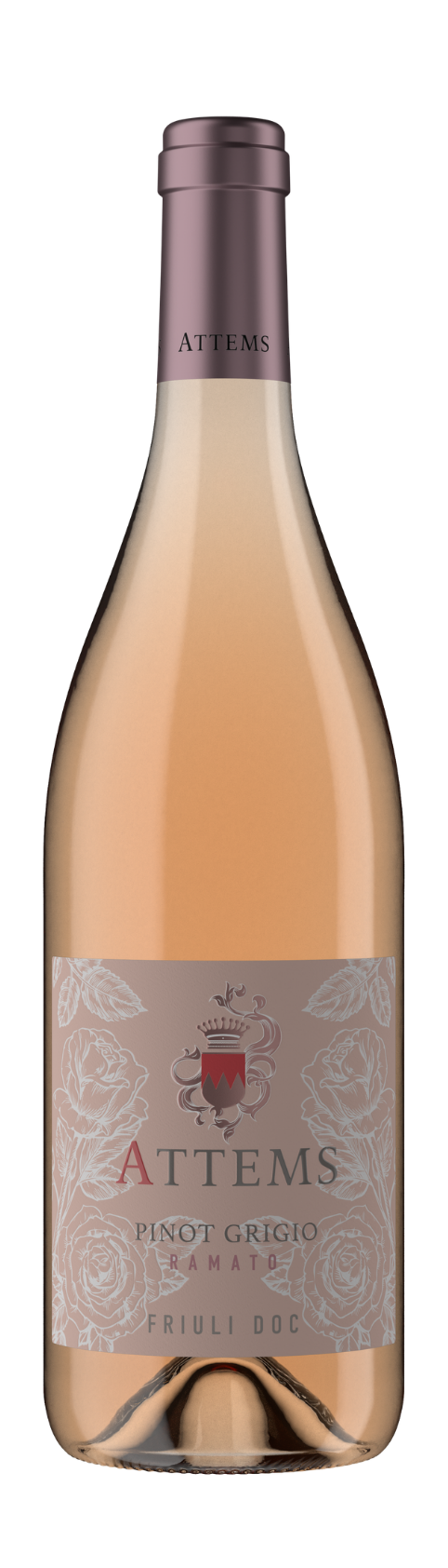 Attems Pinot Grigio Ramato riprende la tradizione della Repubblica di Venezia, perché “ramato” era la parola con cui si indicava il Pinot Grigio. Nasce da una vinificazione particolare: il mosto resta a contatto per circa 10 ore con le bucce e arricchisce il vino di una bellissima sfumatura rosata. Il bouquet è intenso e complesso, con netti sentori di pesca bianca, melone, seguiti da note fruttate di mora, ciliegia amarena e un intrigante finale di fiori di sottobosco. Al palato è avvolgente, con una piacevole acidità ed un finale lungo di frutta rossa e sensazioni minerali.